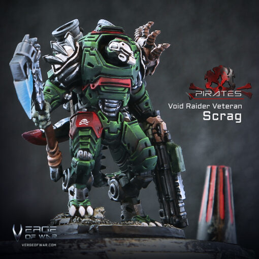 The unit сonsists of 6 models and each has 4 weapon options. The set represents 3 different races of the Verge of war Universe: Rungars, Triclons, and Human pirates. Each raider has a unique set of gear that he got joining the pirates, you can even find repairs made in the ship workshop on these miniatures. The best gear of the ship armory is given to the Void raiders with a different variety of weapons from the Scrag shotgun to the Human Astroborn rifle.