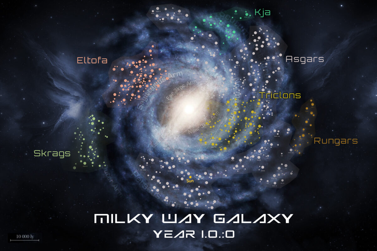 Time passed and life went on as usual until an in fact, everyday event for the Universe: the Milky Way absorbed a smaller galaxy. And with it, a new race moved into our galaxy. The Seit. They were not accustomed to fear the Asgar and started to aggressively conquer living space for themselves. With them they brought slave races, and in the Milky Way they found new ones.