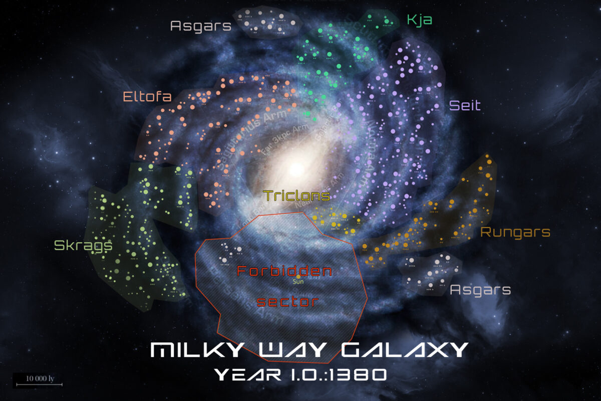 1380 IO – Galactic Council is no more. A united Triclon state also ceases to exist and splits into isolated fragments of several kingdoms that have even less forces to resist the Seit aggression.